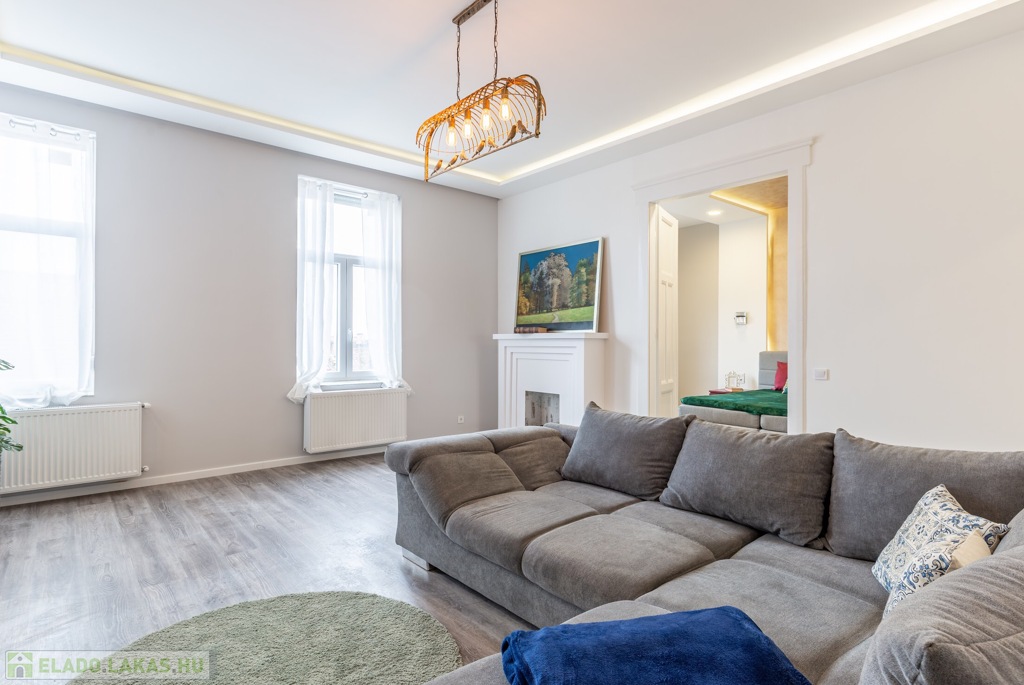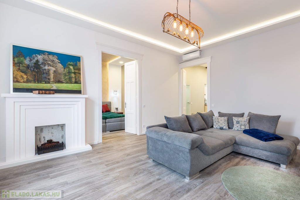 Prémium módon, lakberendező tervei alapján felújított lakás, gépesített konyhával, bútorokkal. A lakás nagy nappalival, egy nagyobb és egy kisebb hálószobával rendelkezik, de könnyen kialakítható még egy szoba, amennyiben két gyerekkel költöznél. Az irányár tartalmazza a beépített gépeket és bútorokat, illetve további bútorok jelentős részét.
