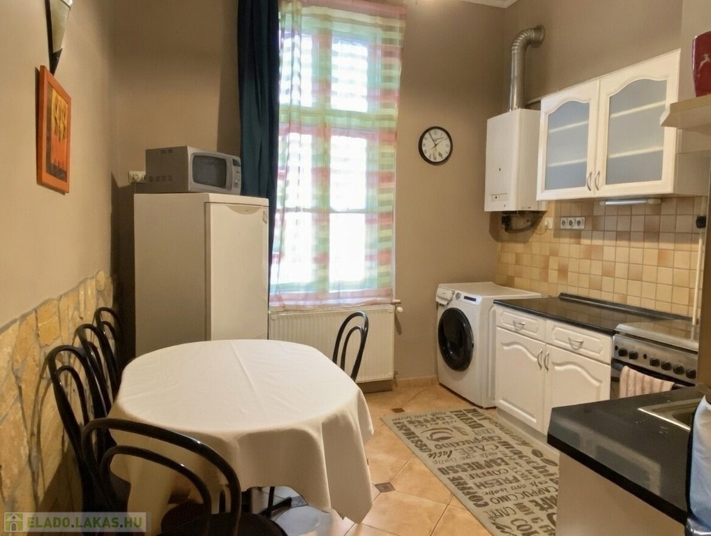 Elhelyezkedése és berendezettsége miatt kiváló hozamú befektetés. Megállapodás szerint a bútorok, az új mosógép (a képeken még a régi látható), valamint az álló hűtőszekrény is az ár részét képezhetik.