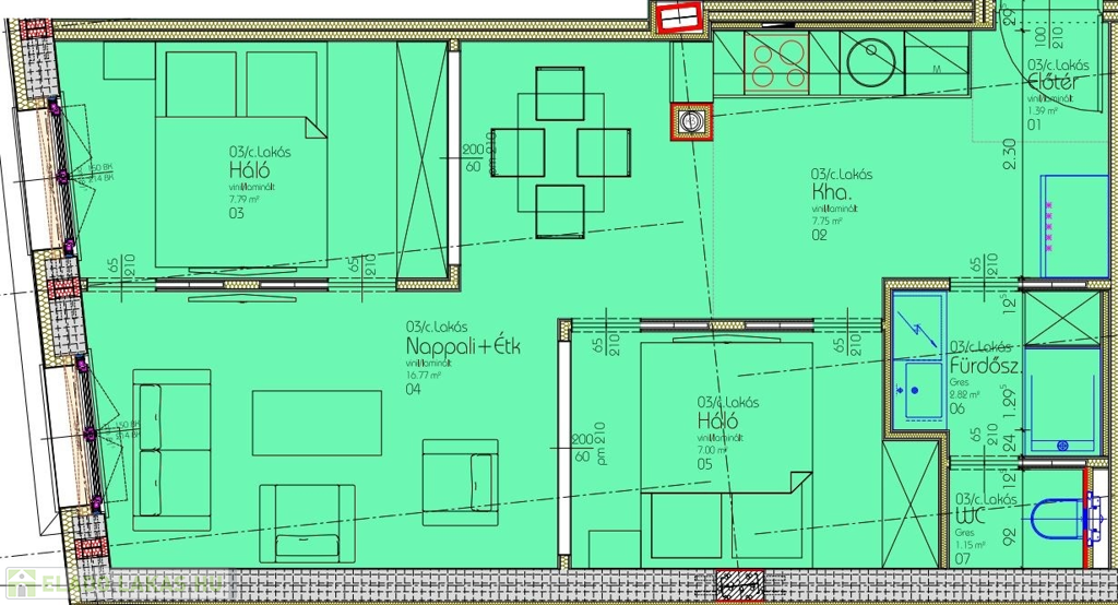 (ingatlan mérete: 77nm, terasz: 40 nm)