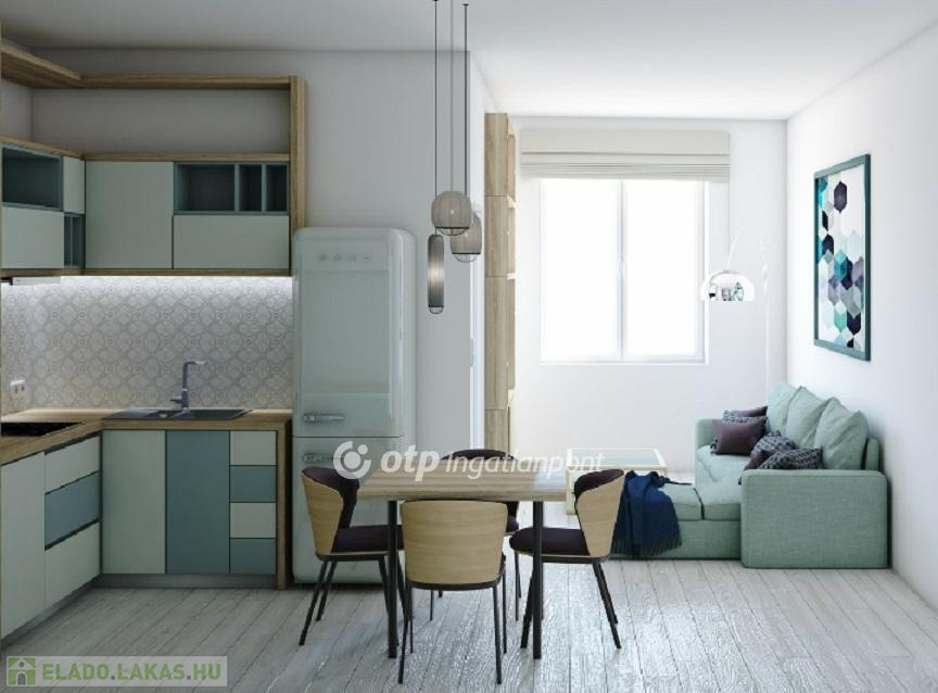 Eladó egy 48 nm-es, 1+2 félszobás, új építésű lakás a társasház második emeletén.