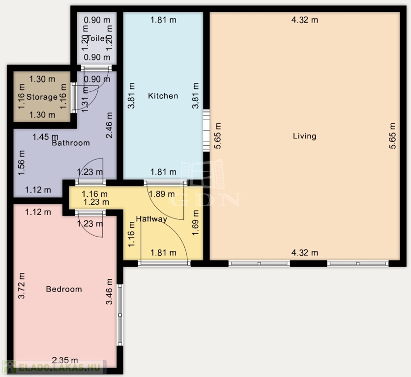 50 m², nappali + különnyíló hálószoba