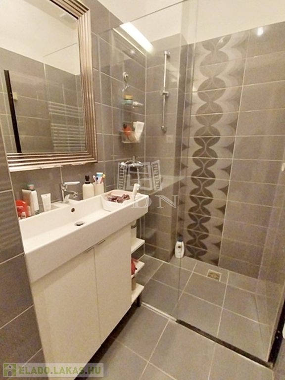 Belépve a tágas 7 nm-es előszobába érkezünk, jobb oldalon kapott helyet a külön nyíló 1.5 nm-es WC, mellette a 3 nm-es zuhanyzós fürdőszoba.