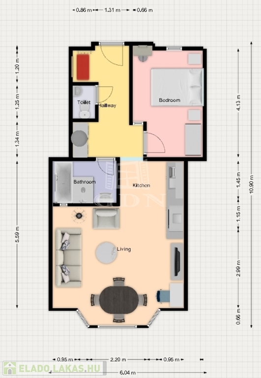 Az ingatlan első emeleti, 2 szobás, 55 m²-es, minden igényt kielégítő otthon.