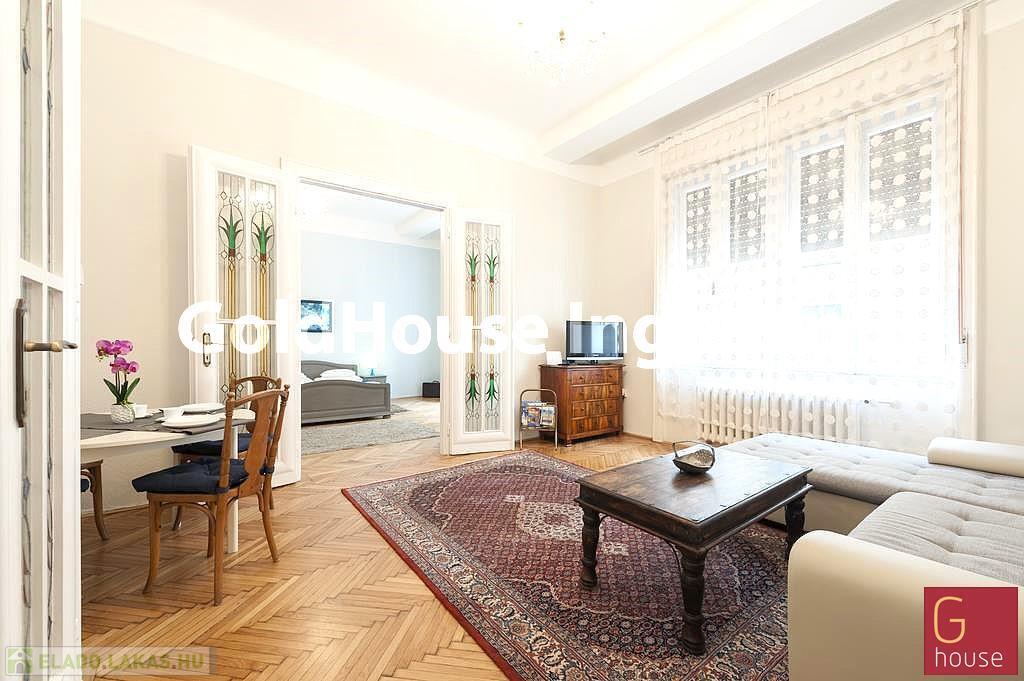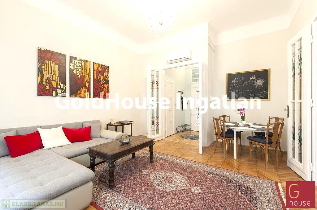 Eladó a VII. kerület belső Erzsébetvárosban, a Rákóczi út – Kazinczy utca sarkán liftes házban, egy második emeleti, 63m2-es, két szobás, azonnal költözhető lakás!