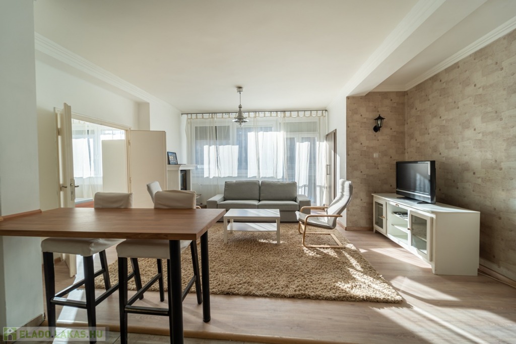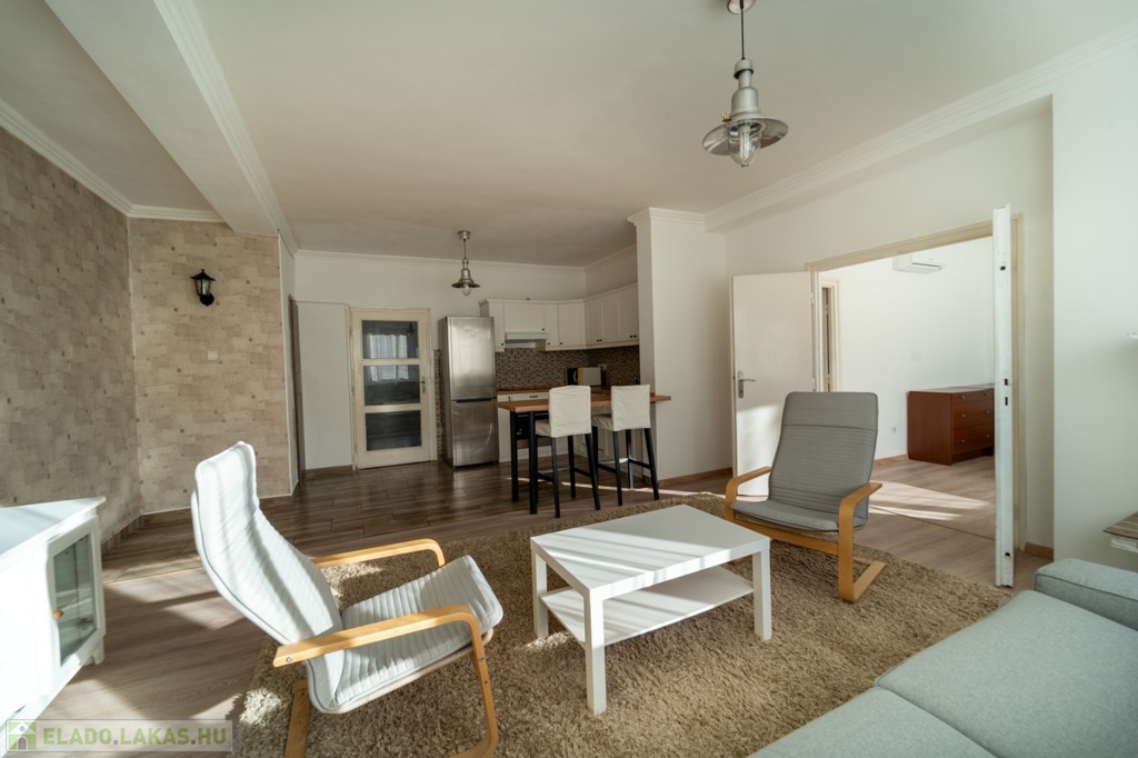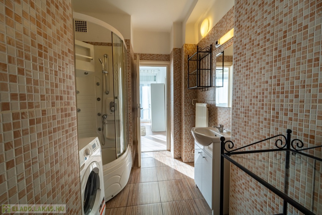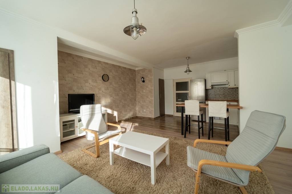 Komplett bútorozott és gépesített, a konyha mosogatógéppel és mikróval is felszerelt, de spájz és egyéb tárolóhelyek is kialakításra kerültek, a jelenlegi bérlők befektetési vásárlás esetén szívesen maradnának az ingatlanban.
