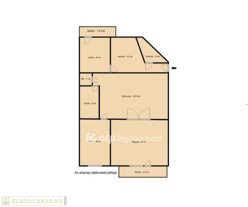 Az ingatlan két szobából, előszobából, félszobából és két erkélyből áll.