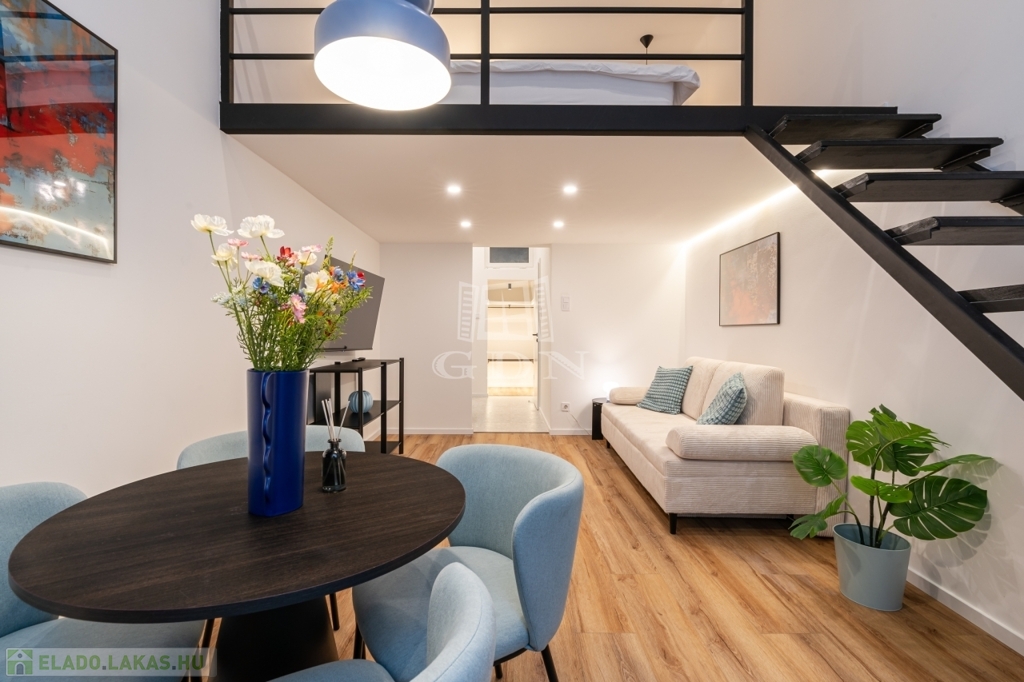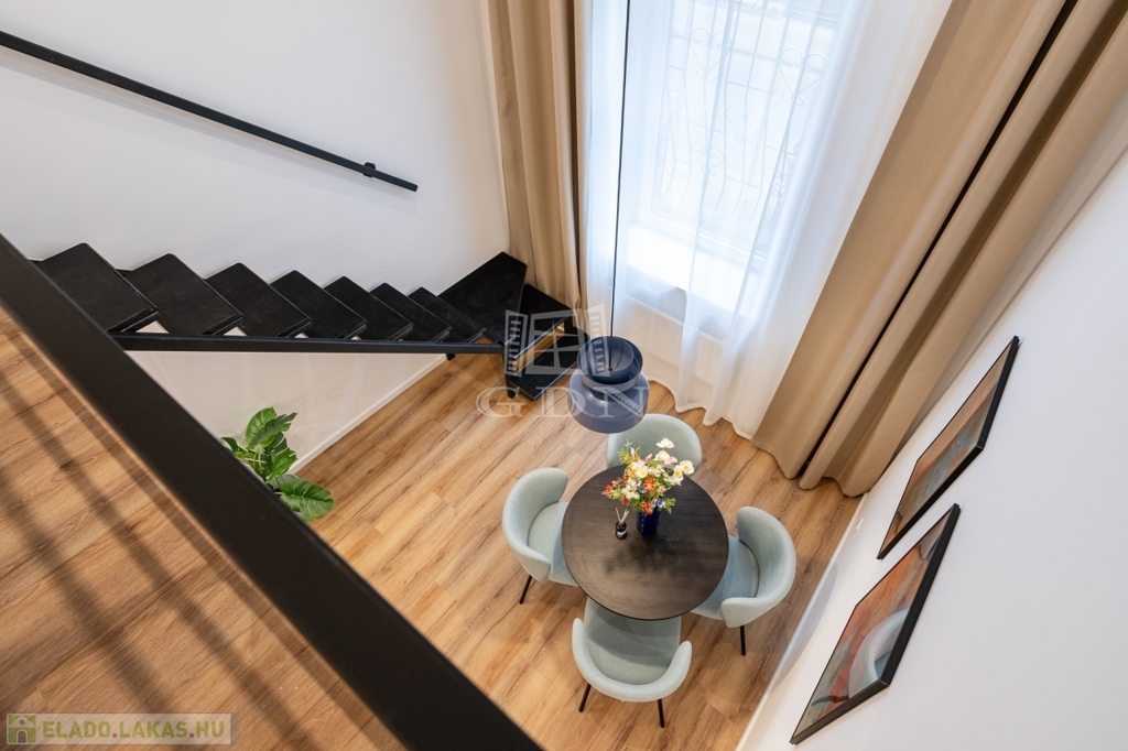 Eladásra kínálunk Budapest VII. kerületében, a Dob utca és Hársfa utca sarkánál, egy igényesen felújított, földszinti, kettéosztott ingatlant.