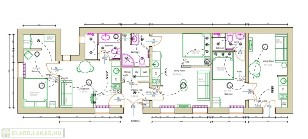 3 különálló lakás, mindegyik saját konyhával, fürdőszobával és WC-vel