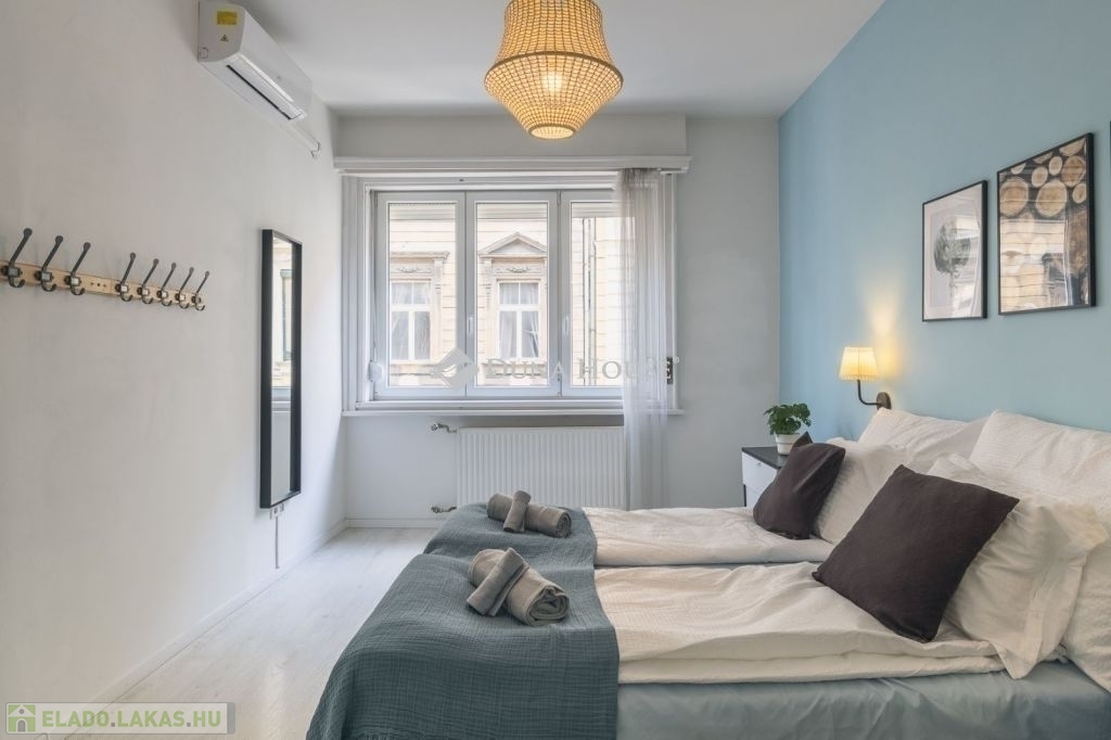 A 83 m²-es, világos és tágas lakást Budapest belvárosában, a Zsinagóga mellett, a Dohány utcában fekszik.