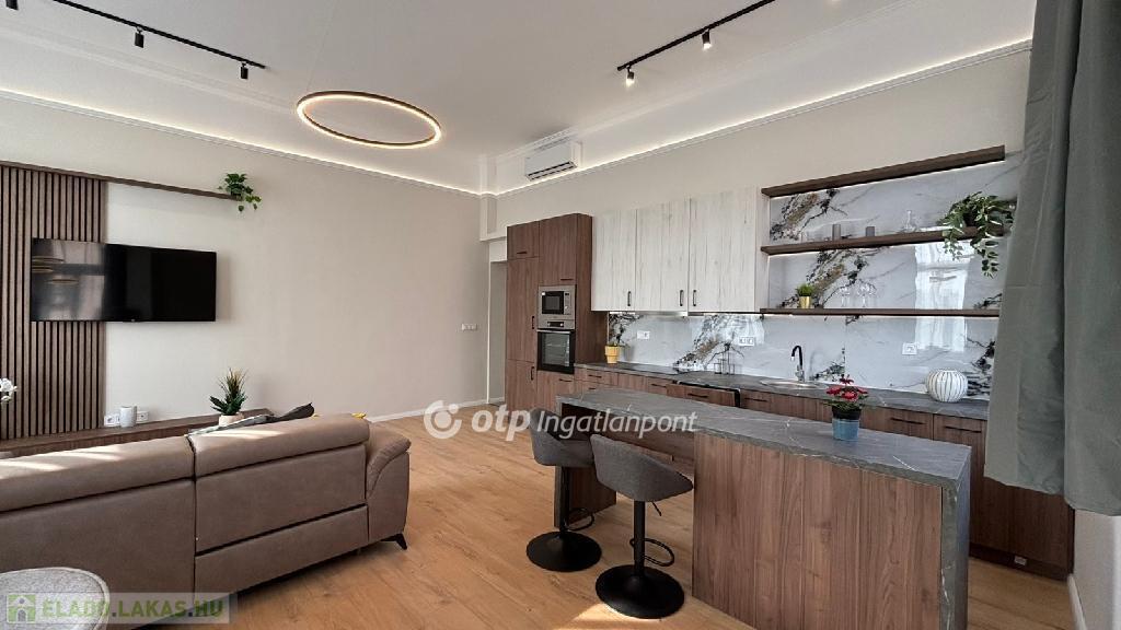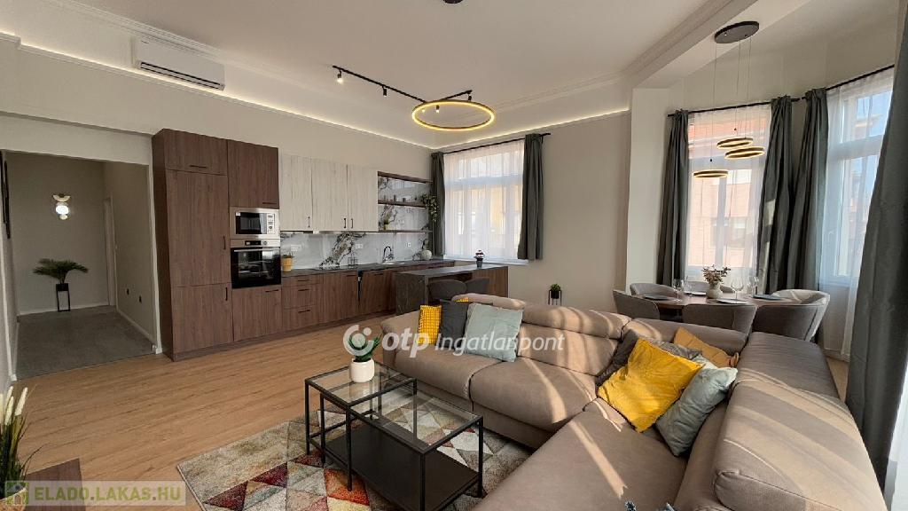 Eladó egy 124 nm-es, teljeskörűen és igényesen felújított lakás egy szép, liftes társasház harmadik emeletén. A minőségi anyagokkal végzett felújítás során a praktikum és az elegancia tökéletes egyensúlyára törekedtek, így egy tágas, világos, jól átgondolt elrendezésű otthon született. A nappali és a konyha egy térben kapott helyet, így kiváló közösségi élményt nyújt, míg a négy külön nyíló hálószoba biztosítja a család minden tagjának a nyugalmat.