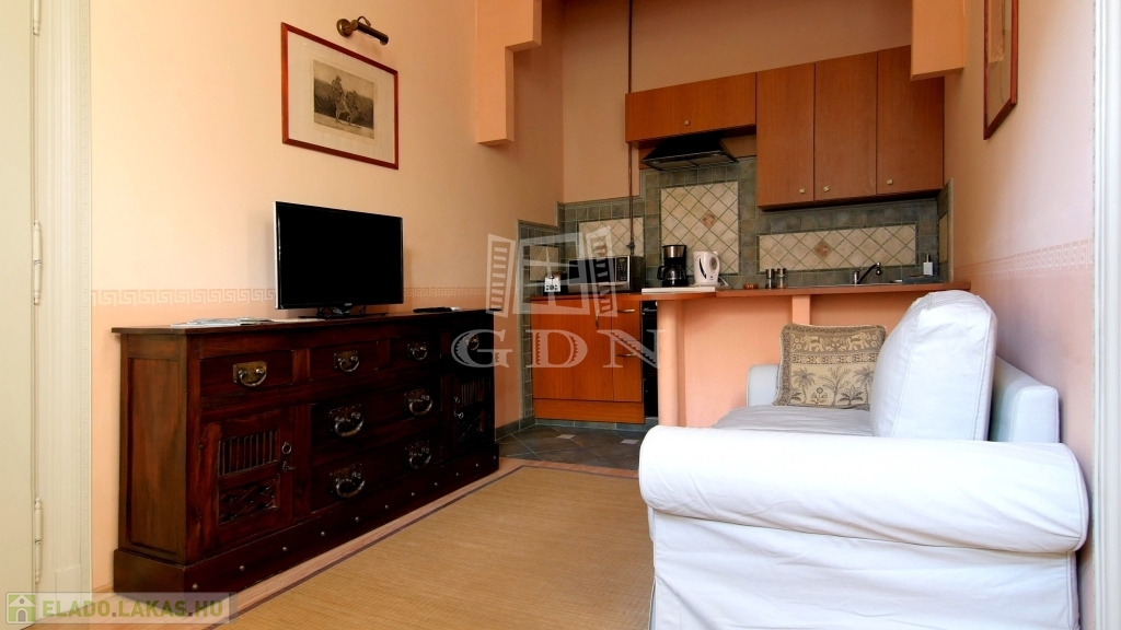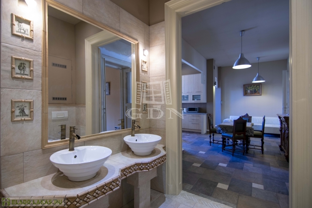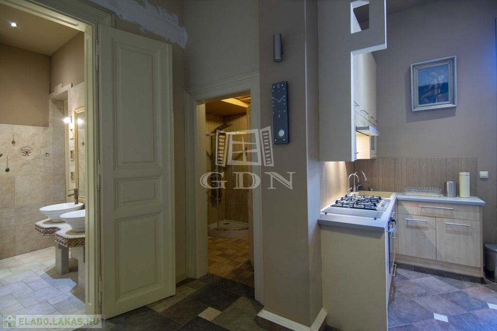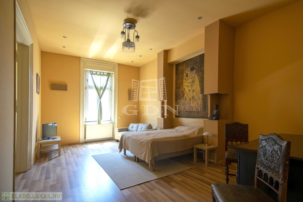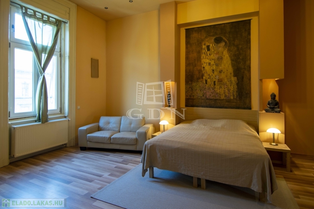 Belvárosban, turisztikailag frekventált helyen, (Blaha Lujza tér közelében) legfelső emeleti, két külön bejáratos lakrésszel rendelkező, napfényes nagypolgári lakás eladó.