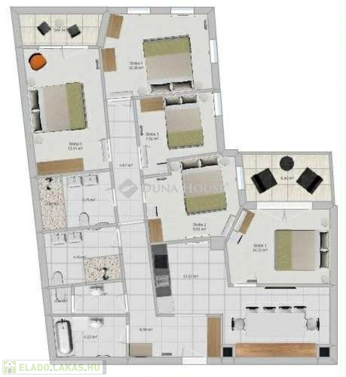 egy öt hálószobás, négy fürdőszobás, két erkélyes, luxus lakás, amely minden szempontból kiemelkedik a piaci kínálatból.