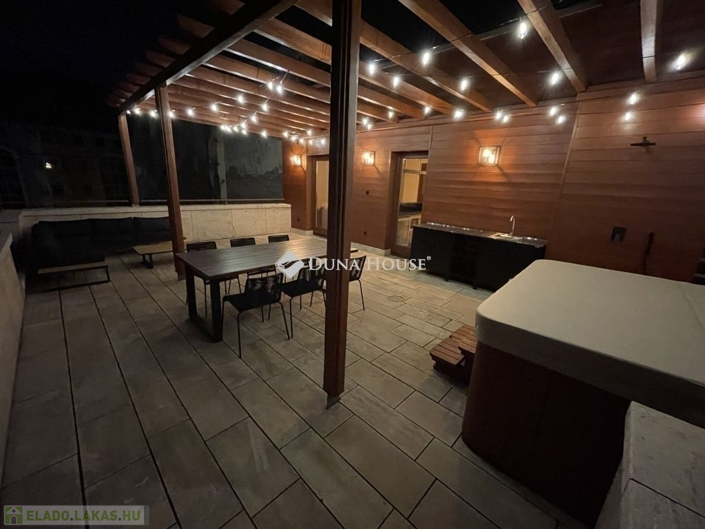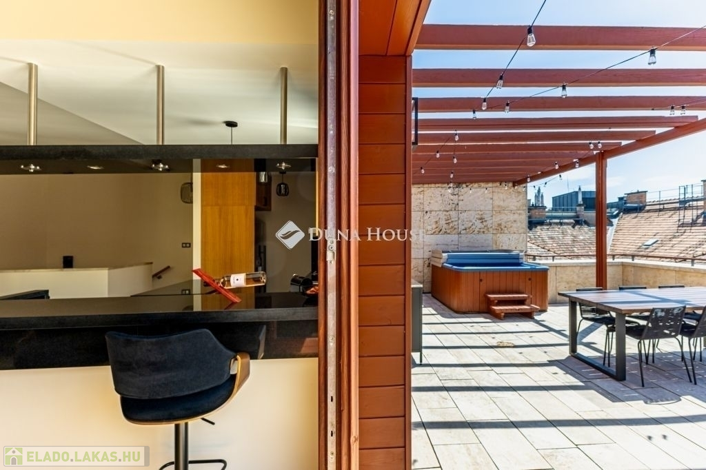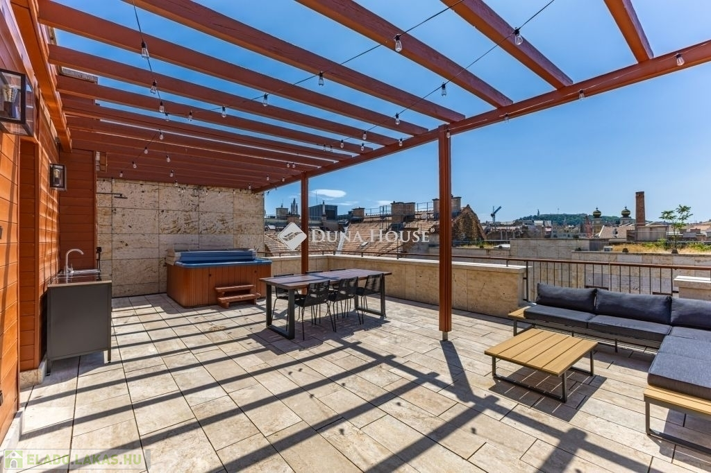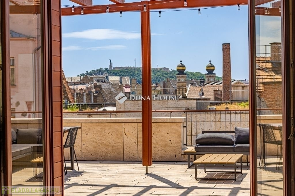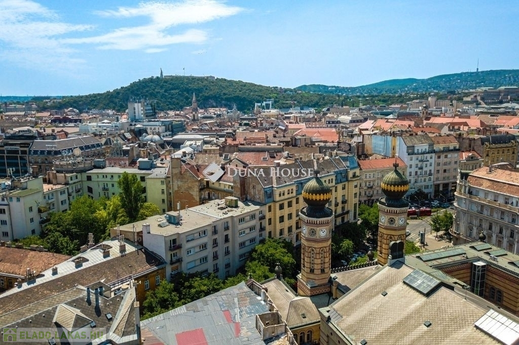 A történelmi zsidó negyed szívében, a Nagy Zsinagóga közvetlen szomszédságában, a Kazinczy utca állandó nyüzsgő gasztronómiai kavalkádjában lehet most az Öné egy 5. emeleti panorámás duplakomfortos reprezentatív penthouse lakás.Remek tereknek ad otthont az ingatlan, a nappali és az étkezős konyha egy térben található, mégis szeparált,így a társasági életet élők kompromisszumok nélkül élvezhetik a lakás előnyeit, amit a hatalmas méretű terasz és az itt található jacuzzi tesz igazán unikálissá és koronáz meg.Nem szabd megfeledkezni a külön nyíló hálószobákról sem, melyekhez saját fürdőszobák tartoznak, így gondoskodva az itt élők kényelméről. Infrastruktúra jó.