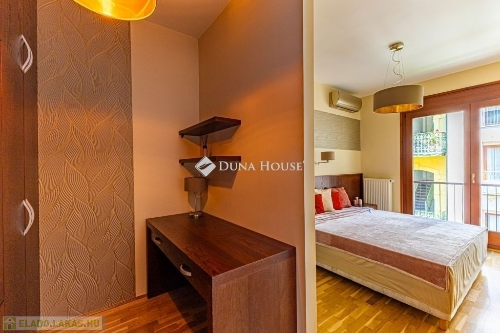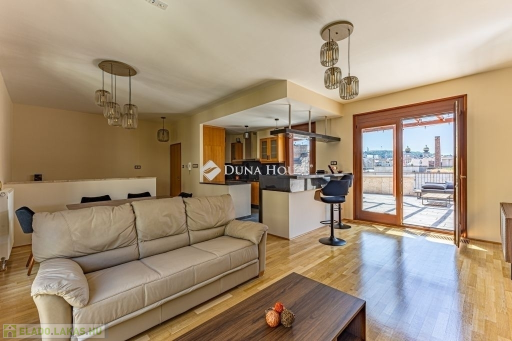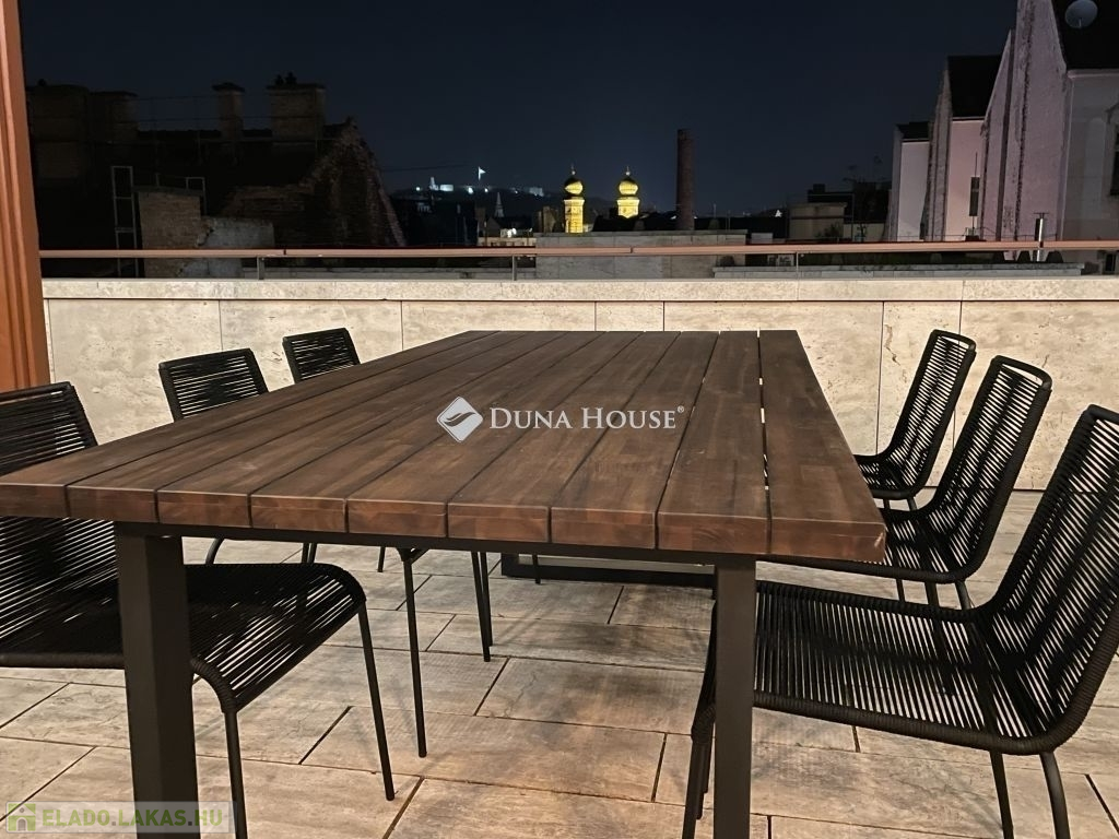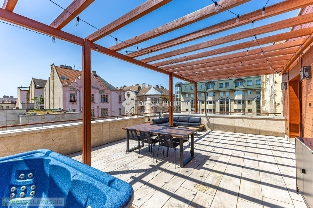 A történelmi zsidó negyed szívében, a Nagy Zsinagóga közvetlen szomszédságában, a Kazinczy utca állandó nyüzsgő gasztronómiai kavalkádjában lehet most az Öné egy 5. emeleti panorámás duplakomfortos reprezentatív penthouse lakás.Remek tereknek ad otthont az ingatlan, a nappali és az étkezős konyha egy térben található, mégis szeparált,így a társasági életet élők kompromisszumok nélkül élvezhetik a lakás előnyeit, amit a hatalmas méretű terasz és az itt található jacuzzi tesz igazán unikálissá és koronáz meg.Nem szabd megfeledkezni a külön nyíló hálószobákról sem, melyekhez saját fürdőszobák tartoznak, így gondoskodva az itt élők kényelméről. Infrastruktúra jó.