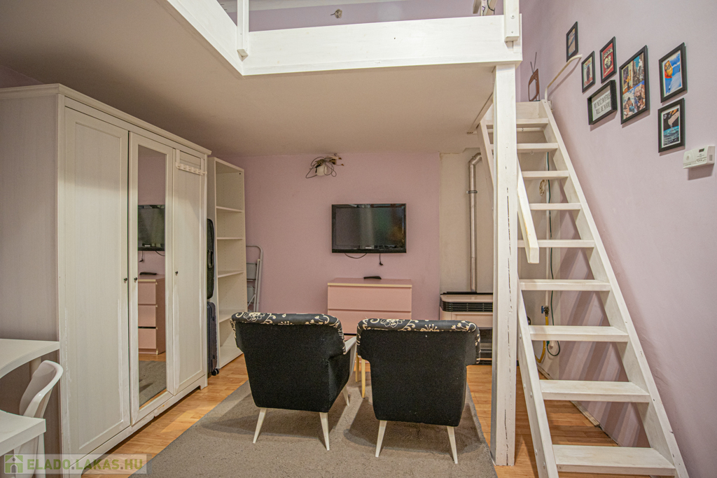 Eladó a VII. kerületben az Alpár utcában közel a Városligethez egy jó állapotú polgári házban lévő 25nm-es, 1 szoba+galériás, jó állapotú, gázkonvektoros, csendes lakás.