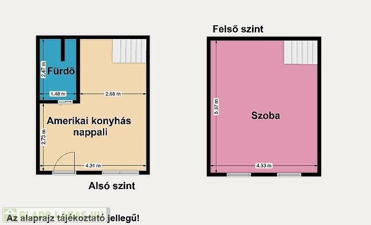 Eladó egy különleges kialakítású, belső kétszintes, utcára nyíló, 2 szobás lakás Budapest VII. kerületében, az Izabella utcában.