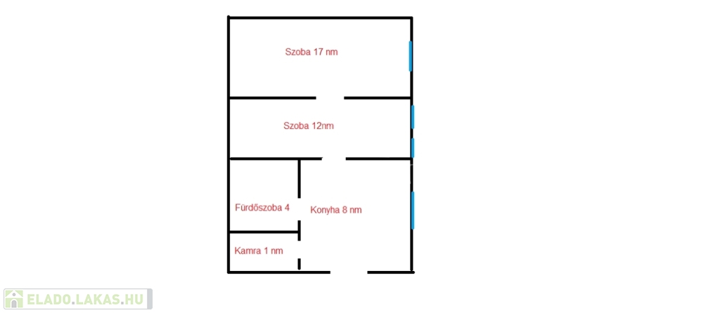 Az ingatlan keleti tájolású, ablakai udvarra néznek.
