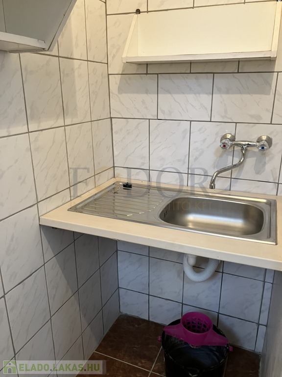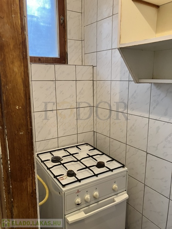 A nappaliban megőrzött halszálkás fa parketta igazi klasszikus érték, felújítva különleges hangulatot adhat. A többi helyiség hidegburkolatos, a szobában linóleum található.