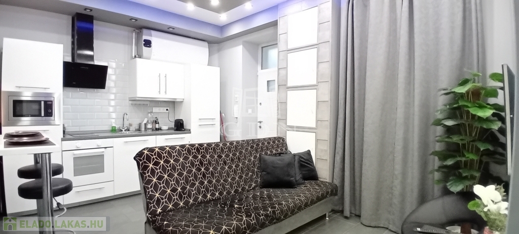 Az Erzsébet körúti appartman amerikai konyhás nappali+háló és modern zuhanyzós fürdőszoba elrendezésű, bútorozott-gépesített, azonnal költözhető.