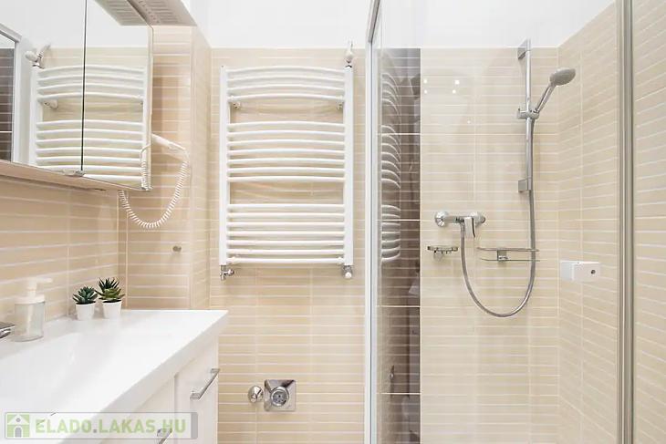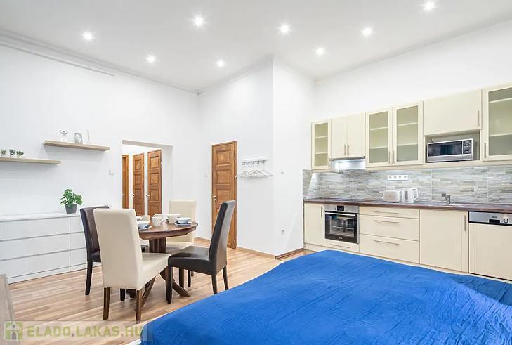 Az ingatlan amerikai konyhás nappaliból és külön nyíló hálószobából áll, ami ritka és rendkívül praktikus ebben a méretkategóriában. A lakás komfortját tovább növeli, hogy a fürdőszoba és a WC külön helyiségben található, valamint egy külön tároló is a lakáshoz tartozik. A lakás körülbelül 10 évvel ezelőtt teljes körű műszaki és esztétikai felújításon esett át, melynek során a gépészet, burkolatok és a belső terek is megújultak.