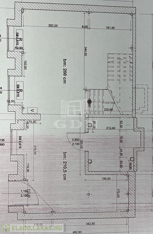 A tulajdoni lapon „műhely” megnevezésű, belmagasság a földszinten 210 cm, az emeleten 230 cm.