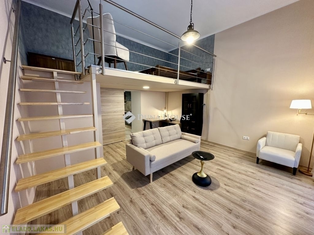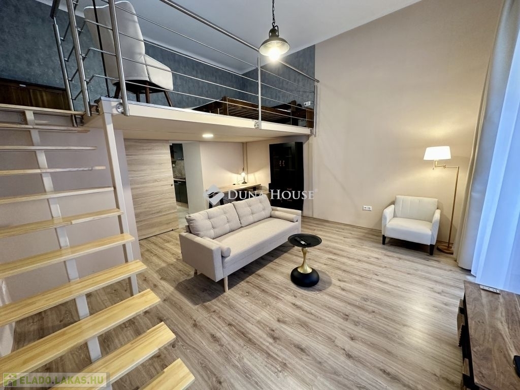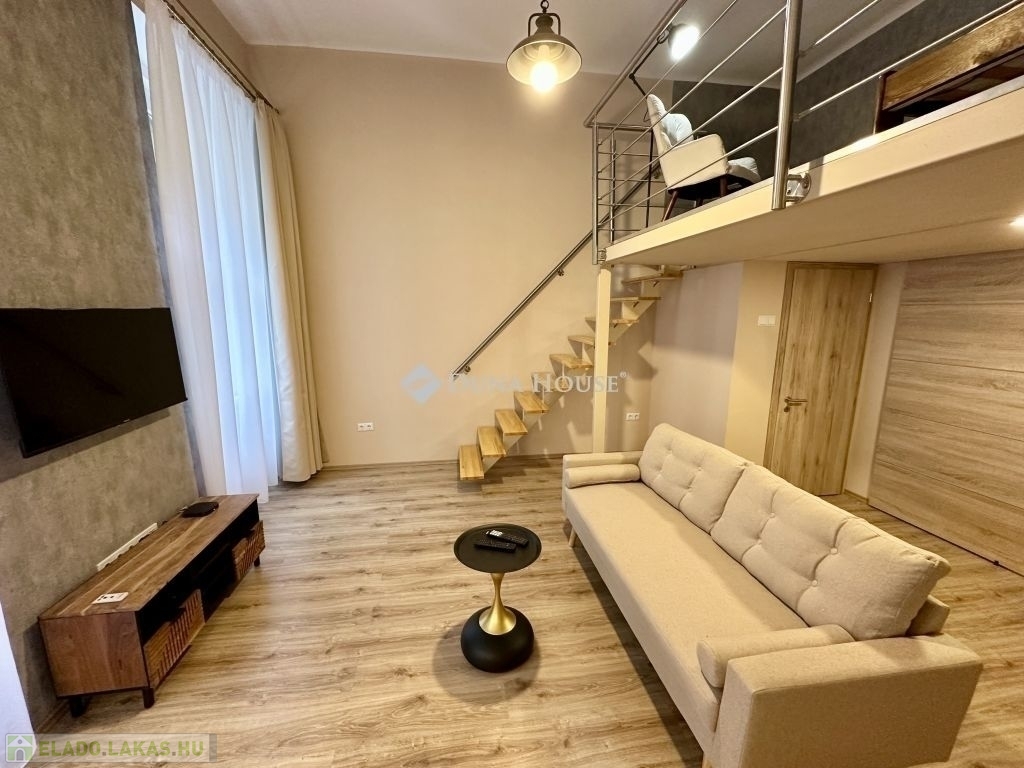 Budapest VII. kerületében eladó egy TELJES KÖRŰEN FELÚJÍTOTT MAGASFÖLDSZINTI 1 szobás + galériás lakás.