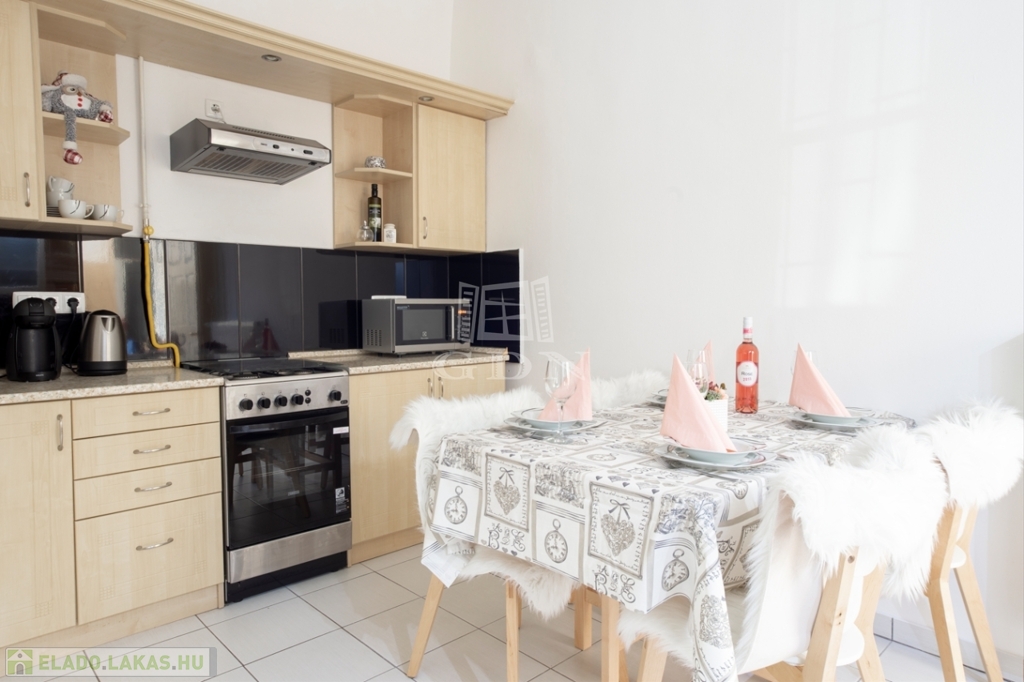 A lakás ideális elosztású: tágas nappali + 2 külön nyíló félszoba, amelyek kiválóan használhatók hálószobának, dolgozószobának. A modern konyha és a fürdőszoba is a felújítás során teljes megújuláson esett át.