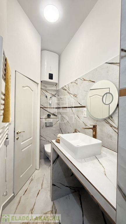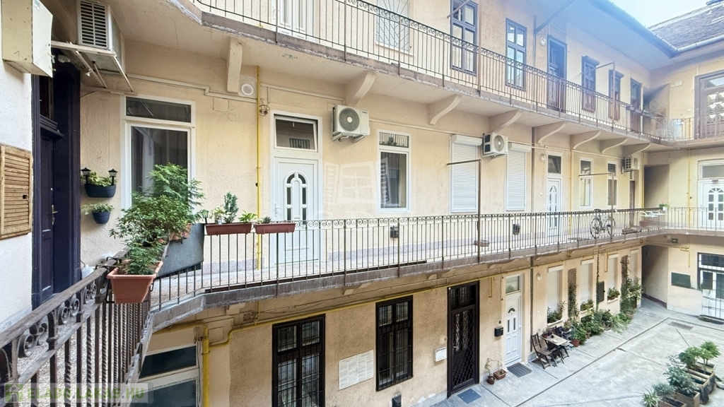 Az első emeleti, udvari fekvésű ingatlan csendes, mégis egy lépésre van a belváros nyüzsgésétől.