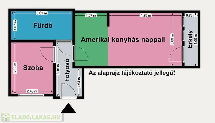 Az ingatlan amerikai konyhás nappaliból, külön hálószobából és fürdőszobából áll, jól átgondolt, praktikus elrendezéssel. A világos nappalihoz kapcsolódó erkély kellemes pihenőhelyet kínál.