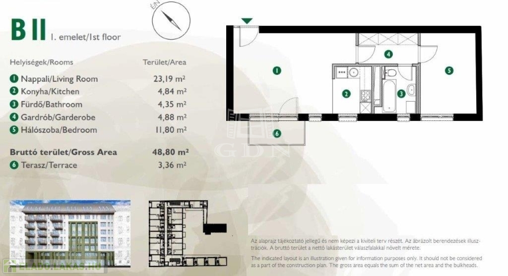 A 2006-ban épült Garay Garden lakóparkban, tulajdonostól eladó egy 49 m²-es, nappali + hálószobás, bútorozott lakás, amelyhez egy 4 m²-es erkély, valamint a bejárat előtt található, 14 m²-es kizárólagos használatú erkély is tartozik – ritka adottság a belváros közelében.