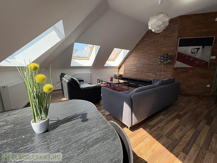 Az ingatlan 48 m2-es hasznos alapterülettel rendelkezik, míg a valóságos mérete összesen 64 m2. Az újépítésű lakás szintráépítéssel jött létre egy liftes társasház IV. emeletén.