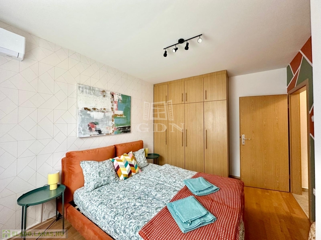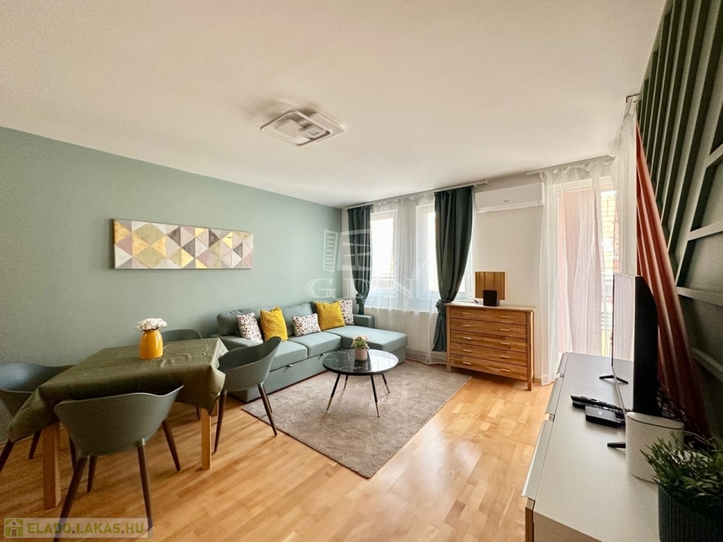 47 m² + 8,5 m² erkély, légkondicionált, udvari nézet, 2010-ben épült, liftes ház 7. emeletén.