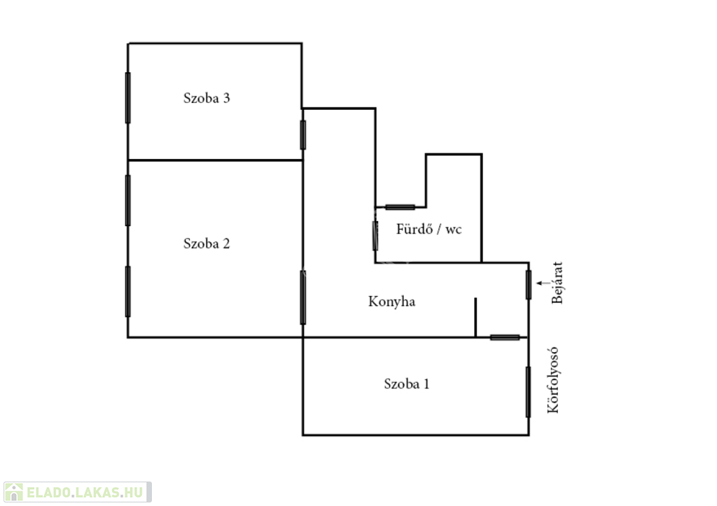 Praktikus elrendezésű, 3 külön nyíló szobával rendelkezik: