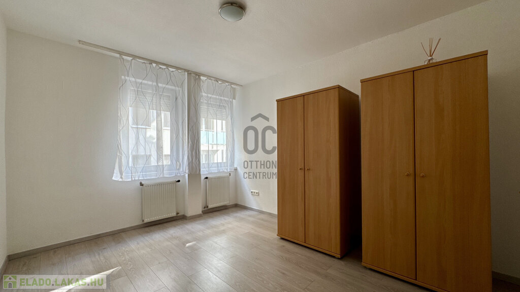 - Az egyik szoba a csendes belső udvarra néz, a másik két szoba pedig a konyha-étkezővel együtt az utcára.