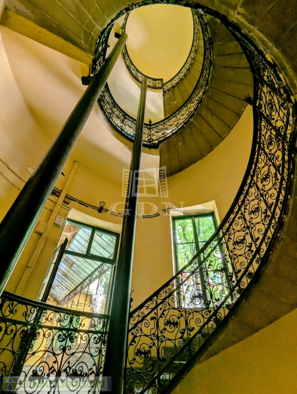 This charming property is located on the first floor of a historic eclectic–neoclassical building dating from around 1880, featuring thick brick walls, impressive ceiling height (4.6 m!), and a unique curved interior layout. The building surrounds a large inner courtyard filled with mature trees and greenery — a peaceful oasis in the heart of the city. A rare bonus is a private on-site parking space, which belongs to the current owner.