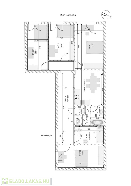 Szobák: 4 különnyíló