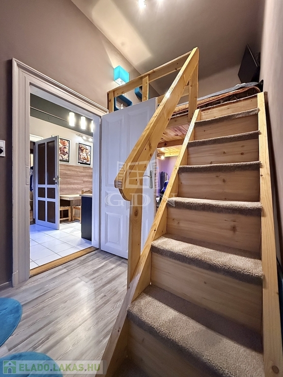 A lakás 2+1 szobás, külön konyhával, valamint nagy belmagassággal rendelkezik. Az otthon különlegessége a dupla galéria, amely kiválóan növeli a hasznos alapterületet, így ideális lehet akár dolgozósarok, hálórész vagy tároló kialakítására. A műanyag nyílászárók korszerűek, a fűtést gázkonvektorok biztosítják.