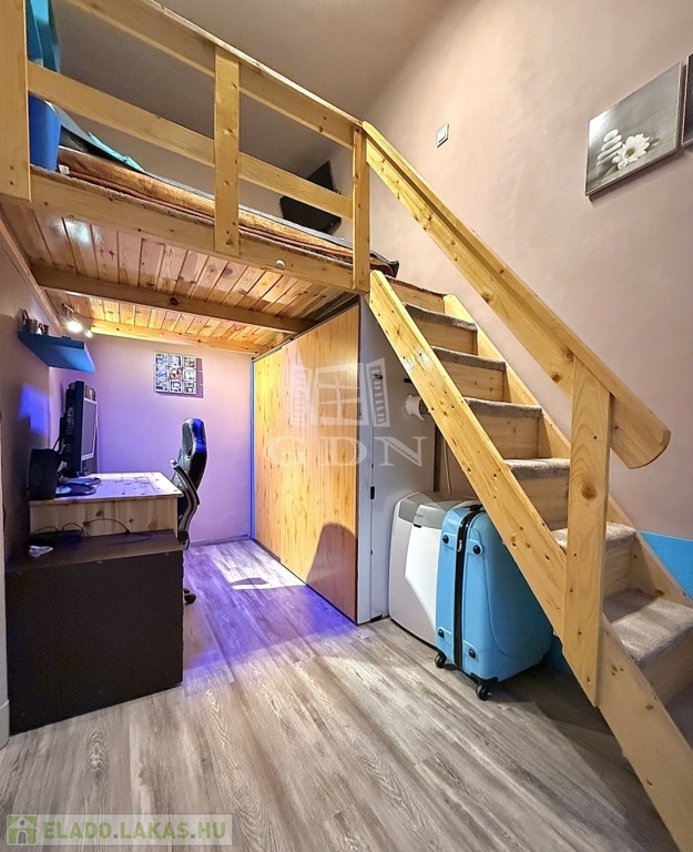 A lakás 2+1 szobás, külön konyhával, valamint nagy belmagassággal rendelkezik. Az otthon különlegessége a dupla galéria, amely kiválóan növeli a hasznos alapterületet, így ideális lehet akár dolgozósarok, hálórész vagy tároló kialakítására. A műanyag nyílászárók korszerűek, a fűtést gázkonvektorok biztosítják.