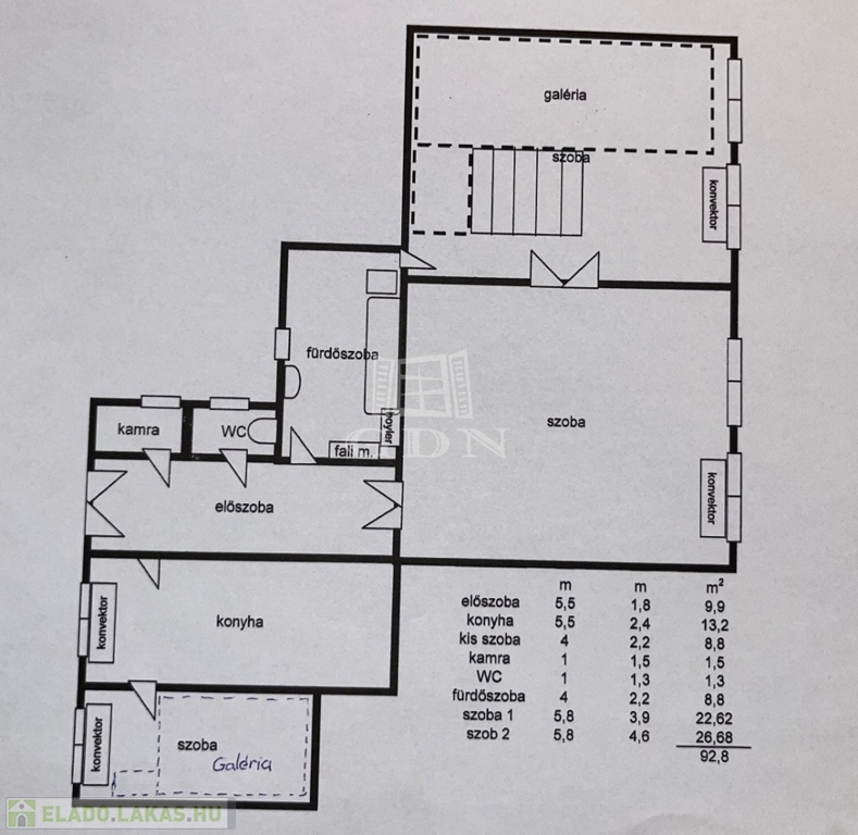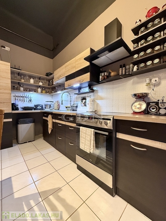 A lakás 2+1 szobás, külön konyhával, valamint nagy belmagassággal rendelkezik. Az otthon különlegessége a dupla galéria, amely kiválóan növeli a hasznos alapterületet, így ideális lehet akár dolgozósarok, hálórész vagy tároló kialakítására. A műanyag nyílászárók korszerűek, a fűtést gázkonvektorok biztosítják.