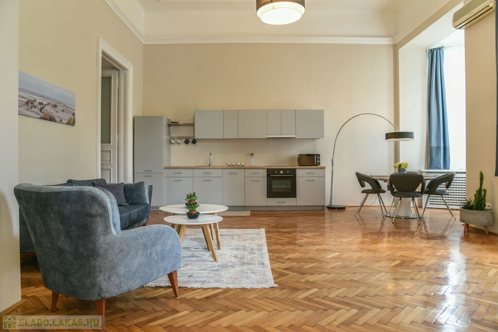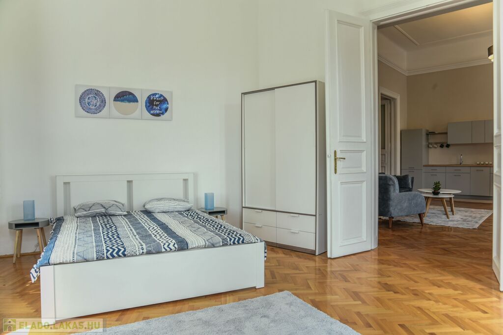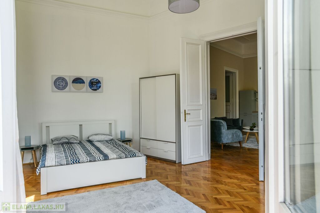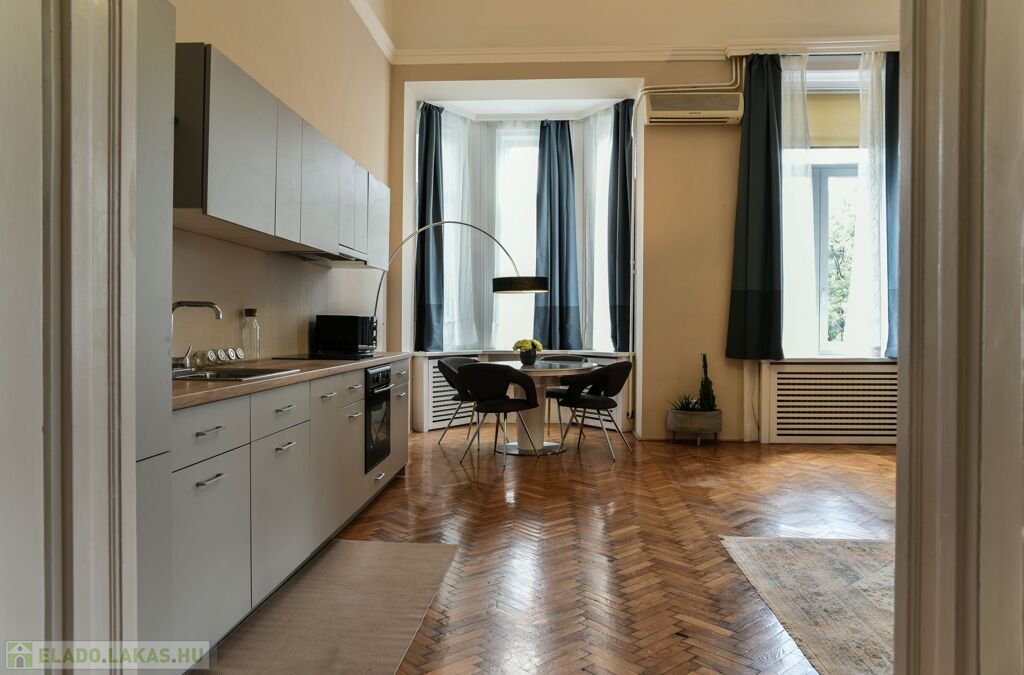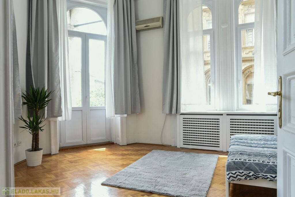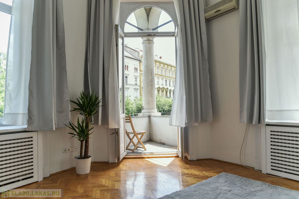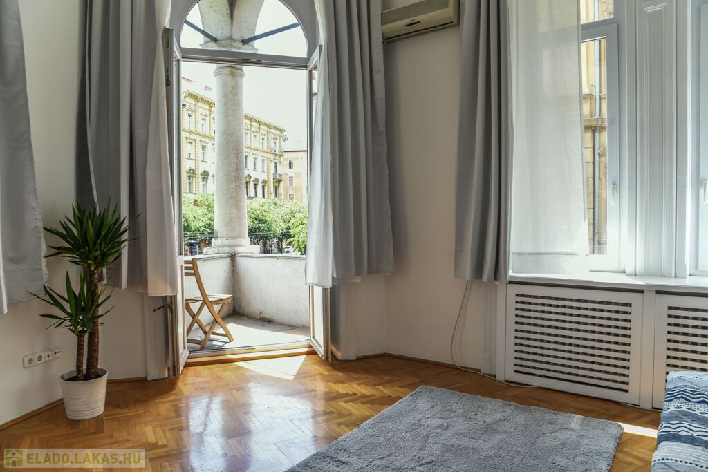 Eladó a 8. kerület Palotanegyed részén egy nagypolgári, erkélyes, térre néző lakás.