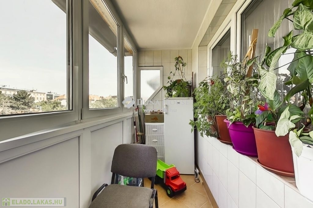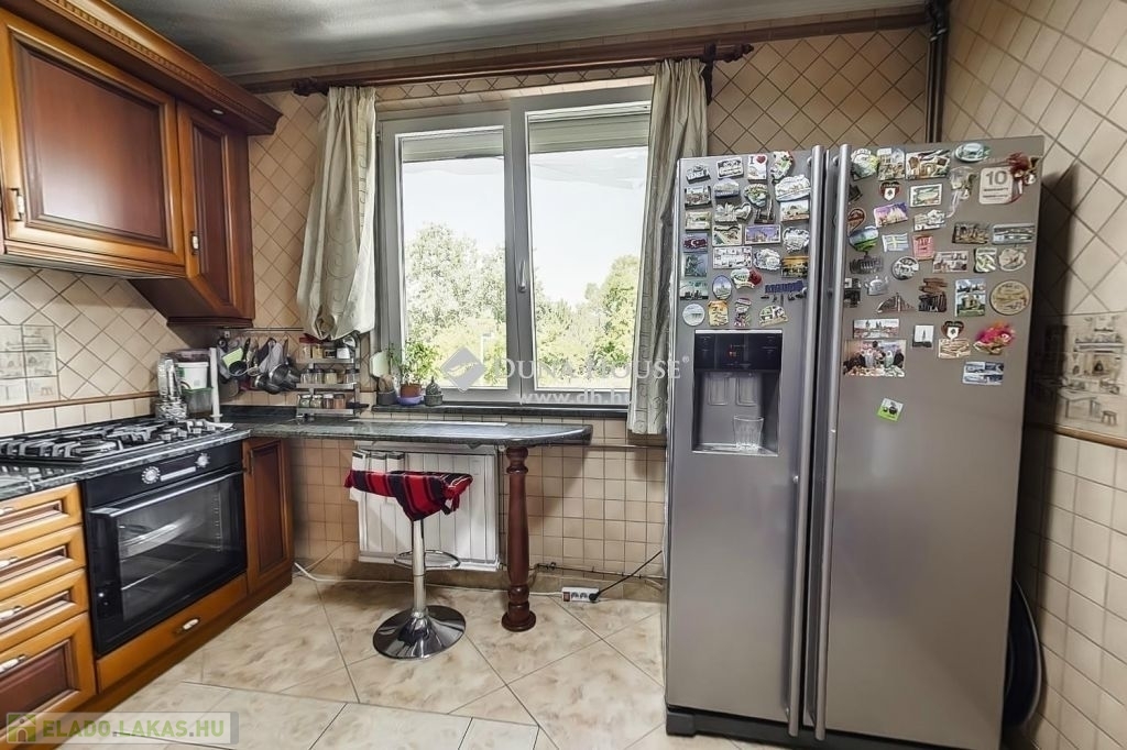 Eladó egy kétszintes lakás a a Százados út legjobb társasházban, ami egy önálló zárt lakókörnyezet, játszótérrel, parkkal és parkolókkal.Az alsó szinten kapott helyett egy nagy nappali + lodzsa, konyha, halószoba, fürdő, wc, kamra és egy gardróbszoba ahonnan lépcső vezet fel az emeletre.