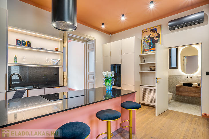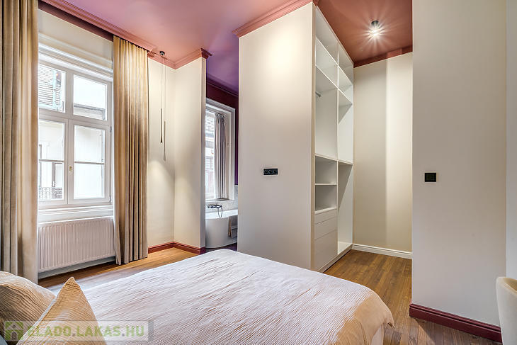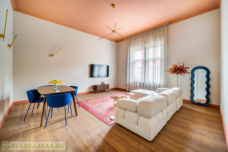 Eladó egy exkluzív, teljes körűen felújított lakás a Palotanegyed egyik elegáns, liftes társasházának magas emeletén.