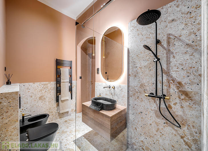 A lakás burkolatai prémium minőséget képviselnek: A vizes helyiségekben olasz Ariostea hidegburkolat található, amely nagy ellenálló képességű, elegáns felületeivel a kortárs design egyik vezető választása – luxushotelek és exkluzív középületek kedvelt anyaga világszerte.