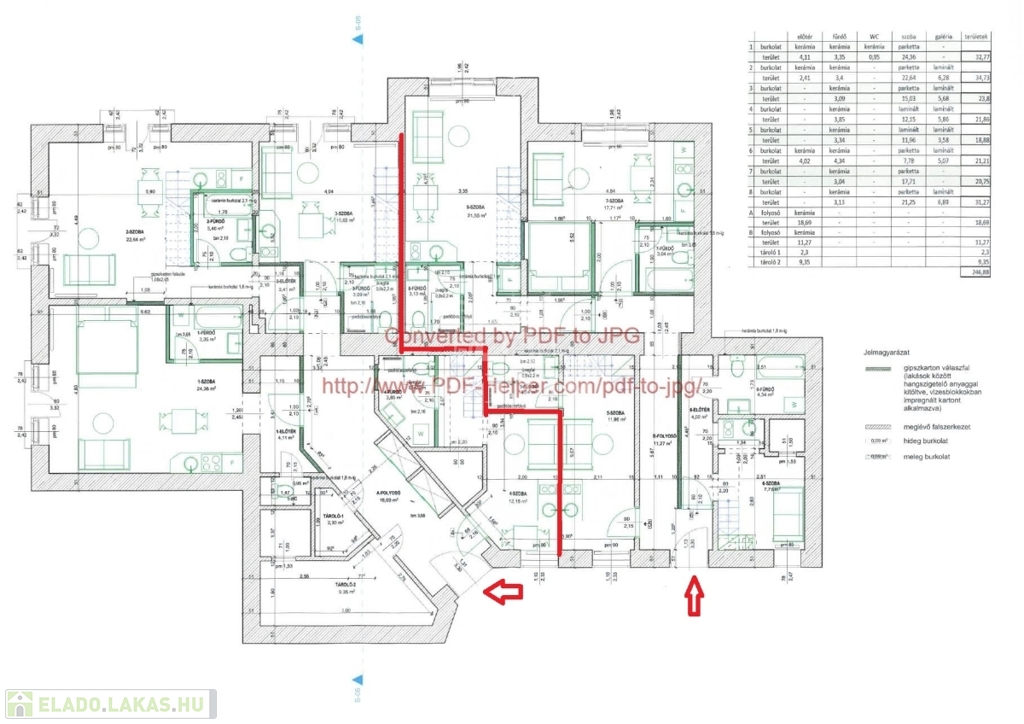 Az egyik nettó 131 nm, a másik nettó 86 nm, a két ingatlan összességében az alvógalériák kialakítását is figyelembe véve bruttó 247 nm.