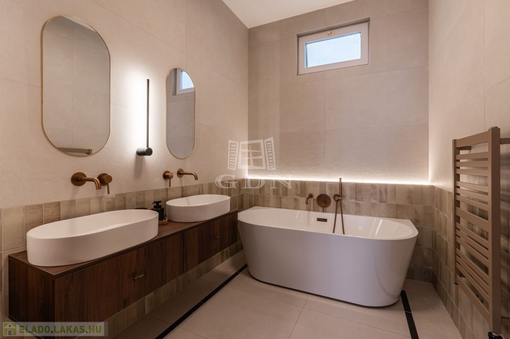 Az ingatlan a tulajdoni lapon 85 nm, a valóságban 88 nm-es tágas tereivel, két hálószobával, két fürdőszobával, amerikai konyhás nappalival és impozáns tükörfelületekkel hódít. A komfortot minden helyiségben klíma, valamint padlófűtés és kombi kazán garantálja.