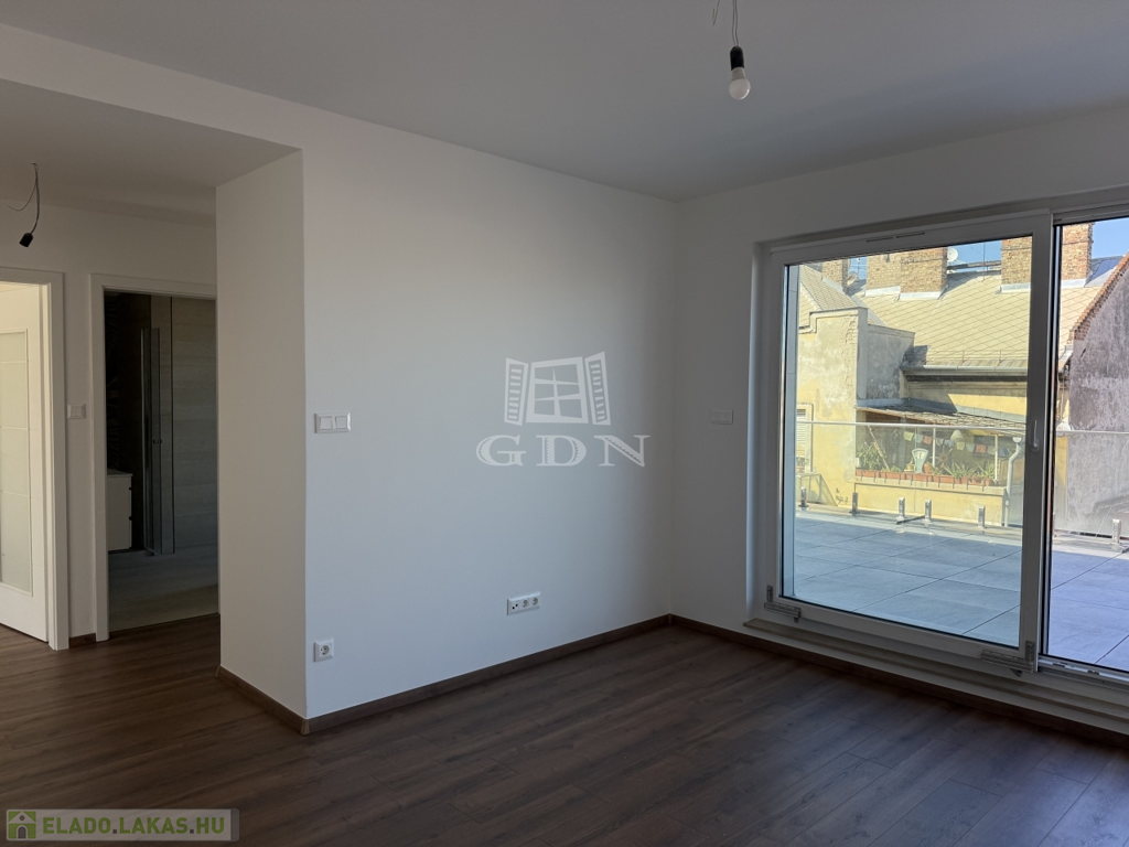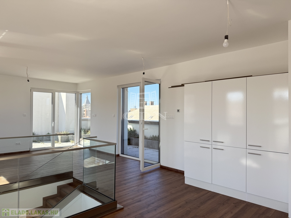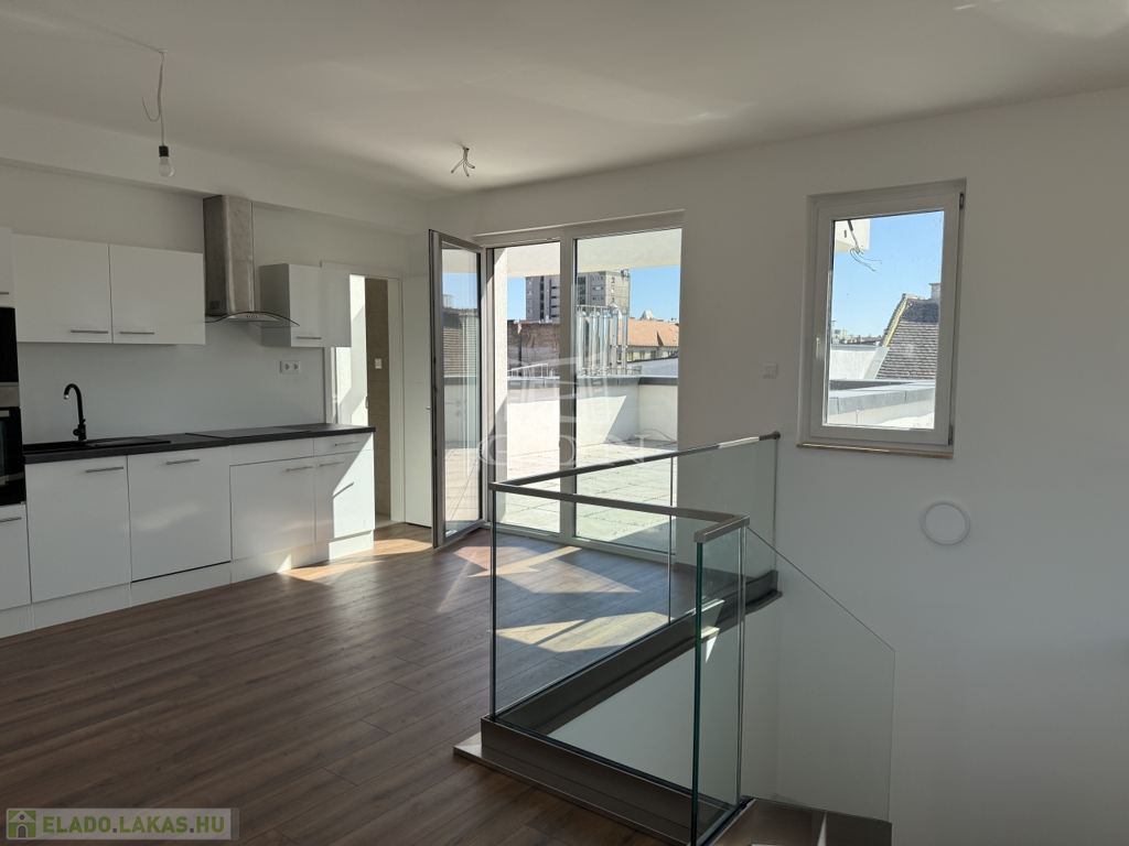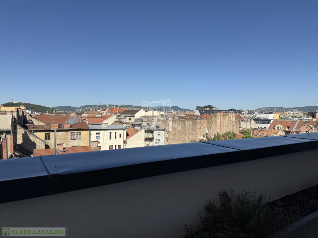 VIII. kerület csendes, mégis központi részén, új építésű ház legfelső szintjén kínálunk megvételre egy belső kétszintes, kulcsrakész, penthouse lakást, páratlan kilátással a Gellért-hegyre és a Hármashatár-hegyre, az alábbi paraméterekkel: