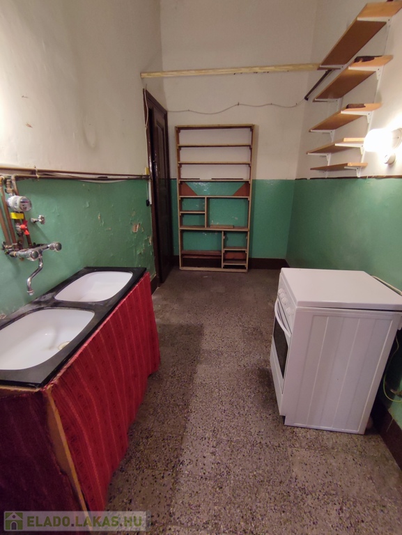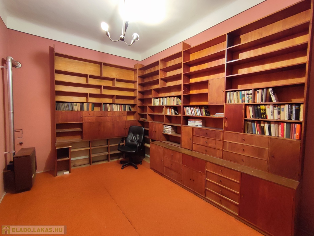 A lakás teljes körű felújítást igényel, így az új tulajdonos saját ízlése szerint alakíthatja ki. Jelenleg gázkonvektoros fűtés, fa parketta és villanybojler található benne. A nagy belmagasságot egy beépített könyvespolc-rendszer hangsúlyozza ki.