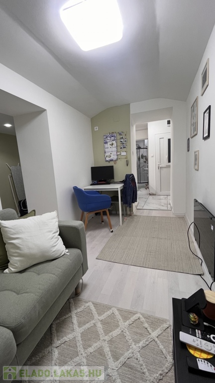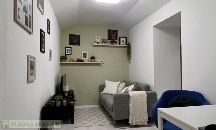 A helyiségek a következők: praktikus kis konyha, zuhanyzós fürdőszoba WC-vel, nappali, ahonnan egy közlekedőn keresztül elérhető egy intim hálófülke és egy gardrób is, így az ingatlan minden négyzetmétere praktikusan kihasználható.