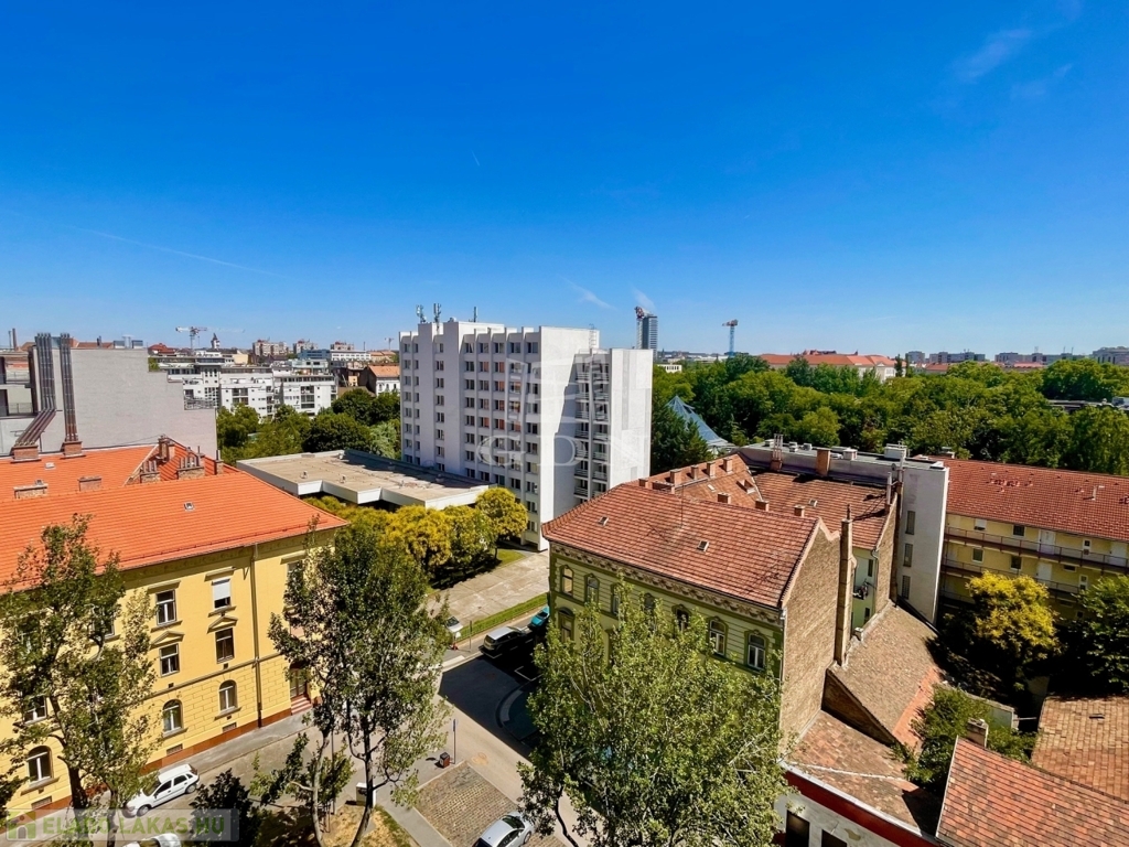 Eladó egy magas emeleti, keleti fekvésű, napfényes, a Füvészkertre panorámás kilátással rendelkező, 31,42 m²-es, kiváló állapotú garzonlakás a Corvin negyed egyik legkeresettebb részén.