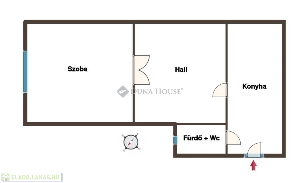 Az ingatlanban egy tágas szoba, egy szobaként, nappaliként is hasznosítható hall, egy tágas konyha, továbbá egy ablakkal is szellőztethető fürdőszoba+wc helyiségek találhatóak. Elrendezése okán fiatalok, párok, idősek, esetleg kisebb család számára ideális választás.